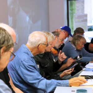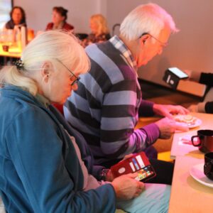 Der digitale Kaffeeklatsch für Ältere und Ältergebliebene. Wer am Smartphone oder Tablet Neues ausprobieren und nette Leute treffen will, ist hier richtig! Bei Kaffee, Schnittchen und Touchscreen probieren wir kritisch, künstlerisch und neugierig modernste Technologien aus. Ob Songwriting mit KI oder Malen in VR, bei uns kann jede*r mitdaddeln.
