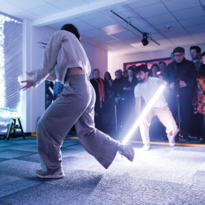 Im gesamten Labor sind verschiedene Experimente aufgebaut, die zur Interaktion zwischen Besucher*innen und MiR.LAB einladen. MiR.LAB ist frisch nach Gelsenkirchen in ein Bürogebäude eingezogen und versucht jetzt, mehr über diesen Ort, die Stadt und die Bewohner*innen zu erfahren. MiR.LAB kann mit den Gäst*innen auf verschiedene Weisen kommunizieren, sich verwandeln und erweitern. Dabei sucht es nach Informationen, Geschichten und Gesichtern für die eigene Dream Machine. Die Eröffnung fand am 9. Februar 2024 statt.
