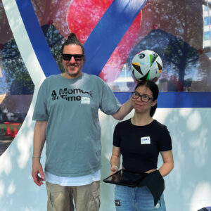 Wovon träumt ein Ball? Vielleicht davon, nicht ständig weggekickt zu werden. Die MiR DANCE COMPANY entwickelt am Spielfreien Tag mit den Teilnehmenden eine Choreografie rund um den Fußball und dessen Träume. Wie bewegen sich Körper und Fußbälle miteinander? Wir jonglieren sie auf dem Kopf, nehmen sie in den Arm und lassen sie nicht fallen. Gemeinsam mit dem MiR.LAB verwandelt sich das Stadion in ein Filmset. Die Teilnehmenden drehen eigene Videoclips und erfinden Geschichten über vergessene Fußbälle, die zweckentfremdet werden.